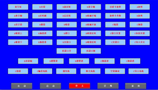 運(yùn)行畫面顯示設(shè)備示意圖、操作按鈕、運(yùn)行指示燈及相關(guān)報(bào)警信息等。