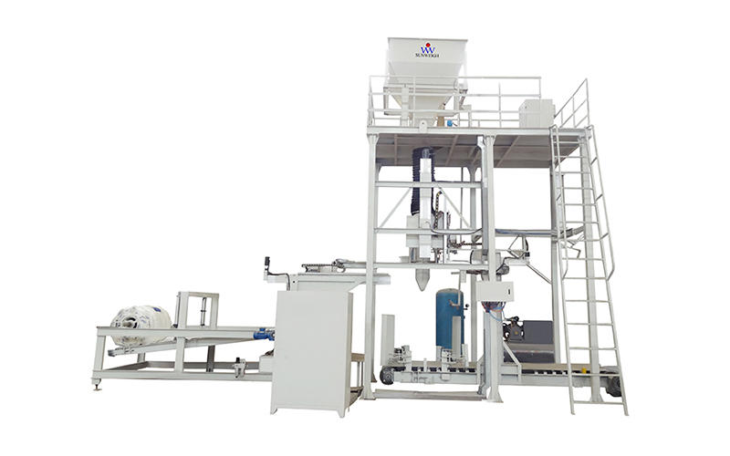 空袋放置架、空袋供給輸送機(jī)、自動(dòng)上袋裝置、上袋移動(dòng)滑臺(tái)、稱(chēng)重物料倉(cāng)、給料裝置、給料裝置滑臺(tái)、袋口熱合封口裝置、噸包提升整理裝置、承重機(jī)架、檢修平臺(tái)、噸包物料輥道輸送機(jī)、除塵管及全套電氣控制系統(tǒng)、扶梯及欄桿等。